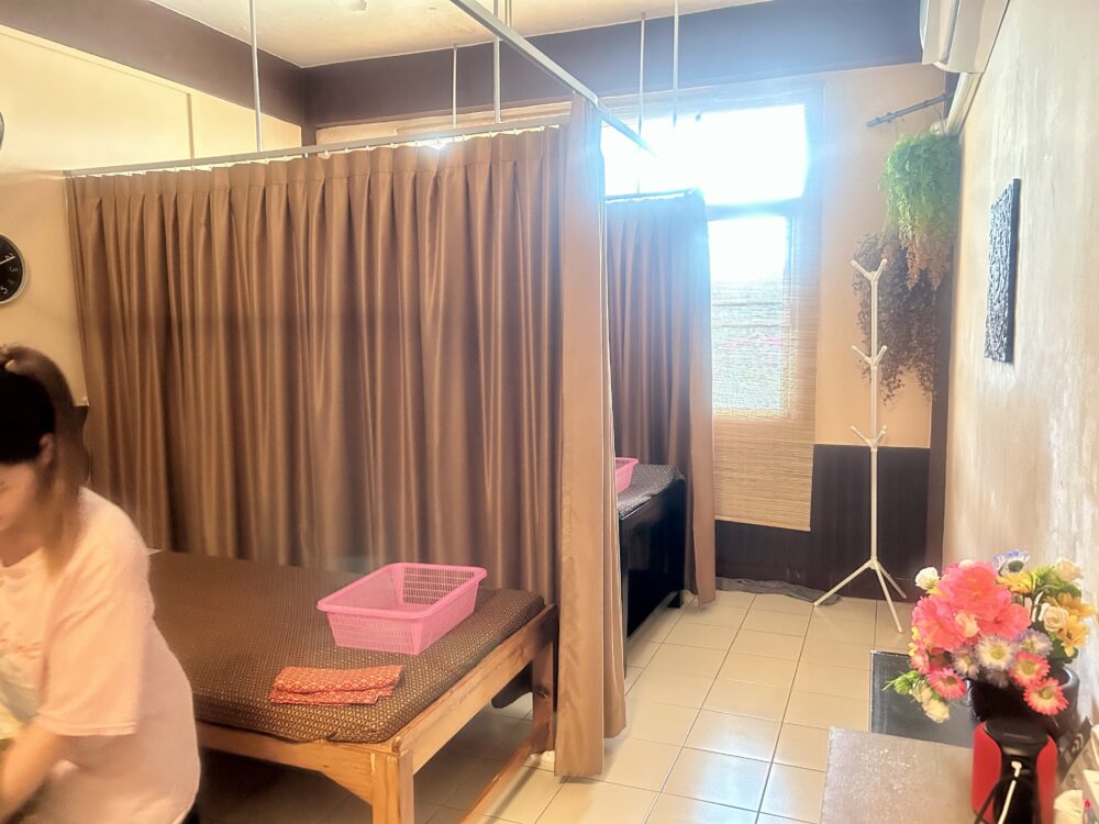 1時間で350baht、チップ込で400baht、マッサージ師のビューティーさんはチェンライ出身で27歳にして8年もマッサージの修行をバンコクでしたそうです。