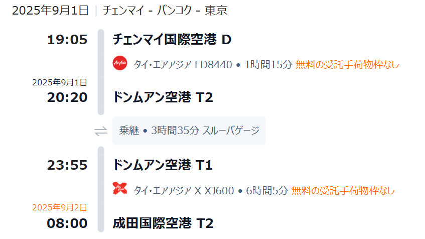 Air Asia チェンマイ➙バンコク
