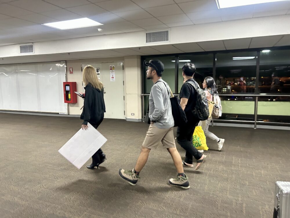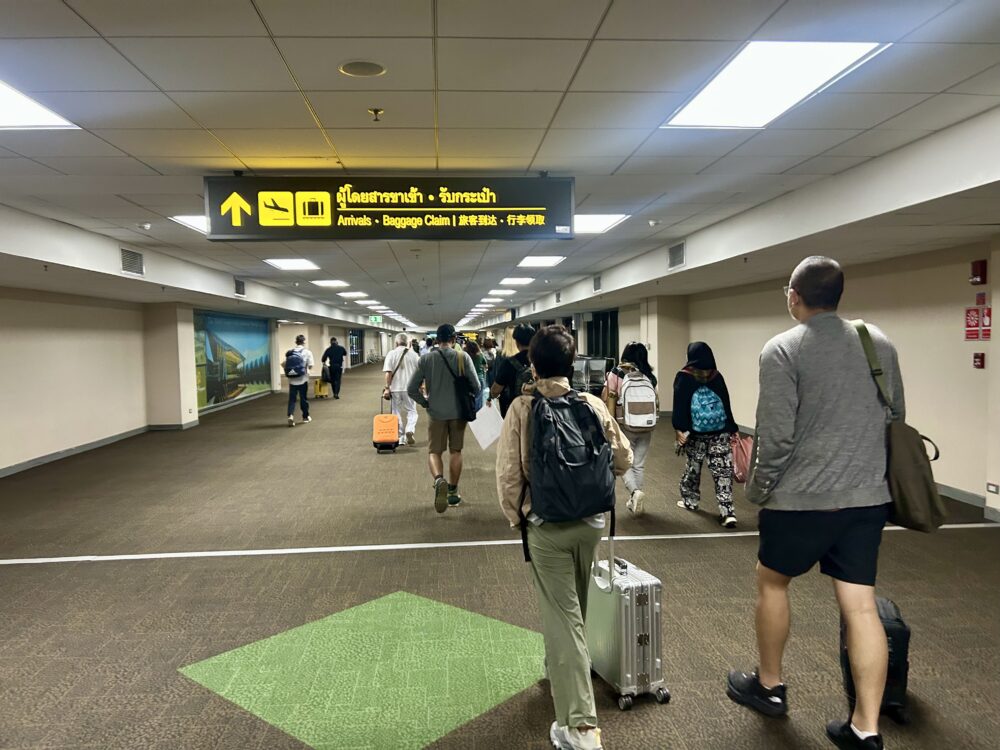 ドンムアン空港に着き飛行機から降りるとTOKYOと書いたボードを持った係員が待っていてターミナル2からターミナル1への道筋を案内してくれる。