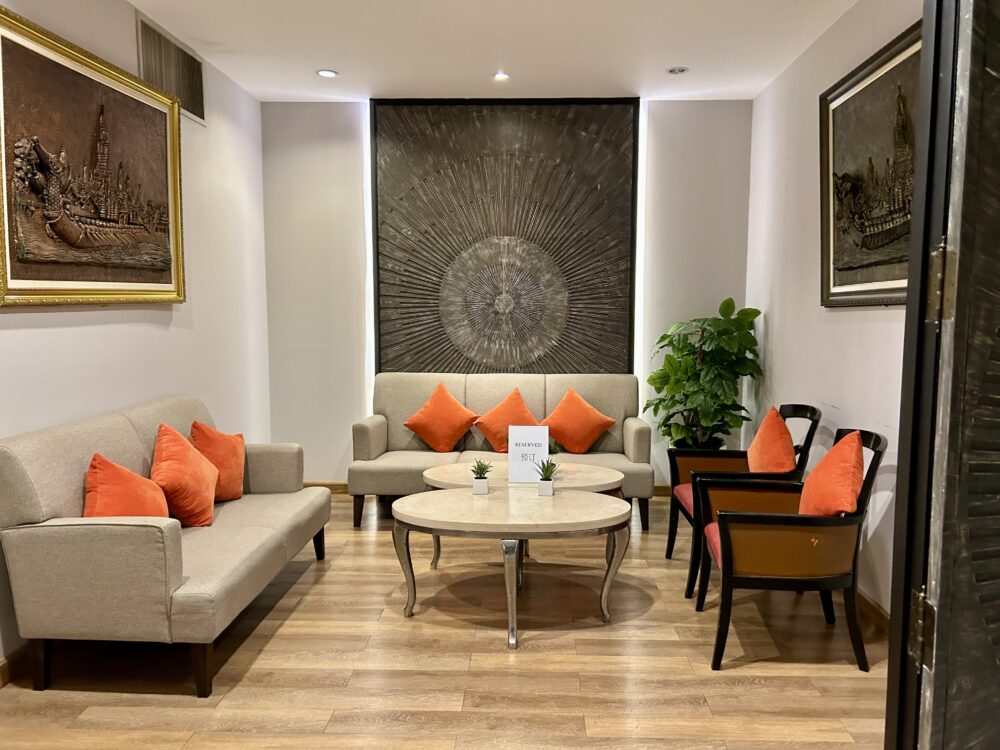 エアサイド – 国際線出発ロビー3階、出入国審査を通過した後左折します。ラウンジは「King Power」免税店の向かい側にあります。