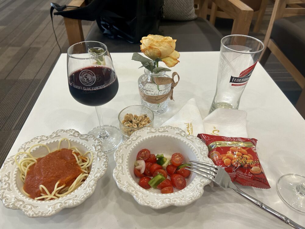 もう恒例となったラウンジの写真。どこかに必ずアルコールが写っているのが可笑しい。