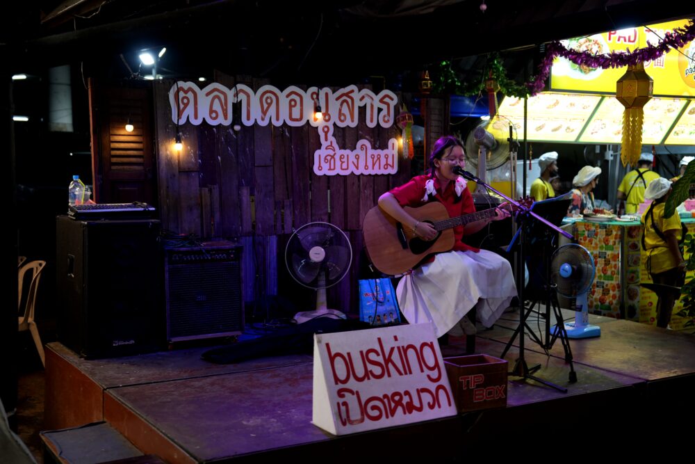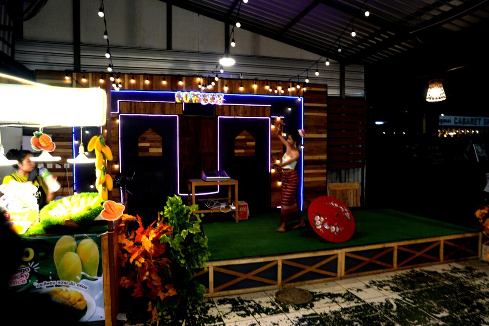 タイ北部の民族衣装やバックなどのお店も多く、タイ伝統ダンス、ライブ、フードコートもあり