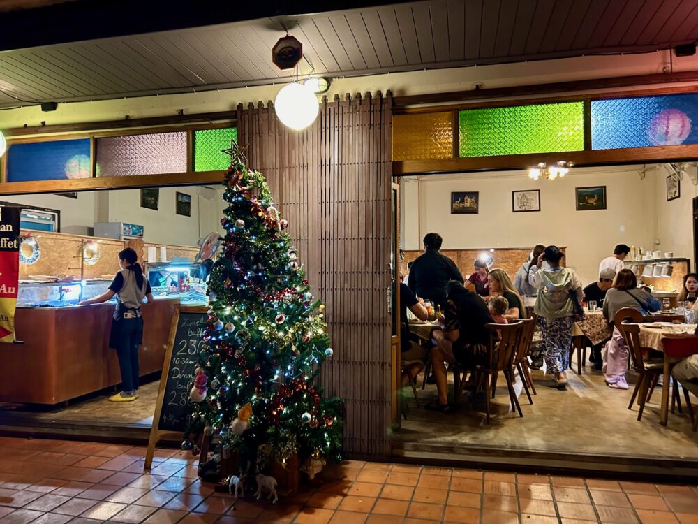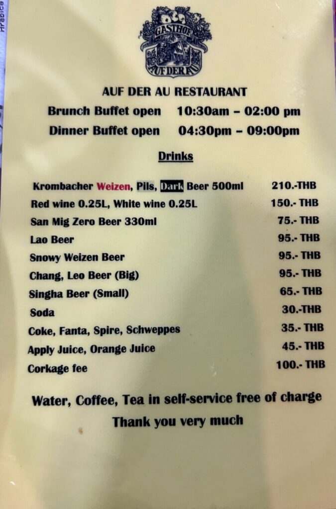 今日(12/30-2023)はここチェンマイの誰もがお勧めドイツ料理の食べ放題Auf der Au Restaurant Bistro、行ってきました。