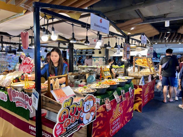 ↓入口は入っていきなり催事、100とあるのは100baht、どれも420円です。