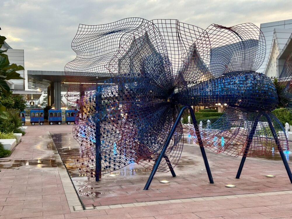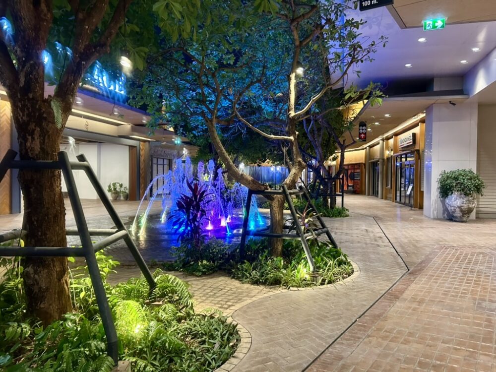 タイ初のインターナショナル高級アウトレット「セントラルビレッジ」は、スワンナプーム国際空港から車で10分ほど、バンコク中心部からは45分ほどの場所にある今話題のアウトレットモールです。外観は、タイ式の切妻屋根とモダンなタイ建築様式を組み合わせて設計されており、それぞれのアートを楽しみながらお買い物をすることができます。