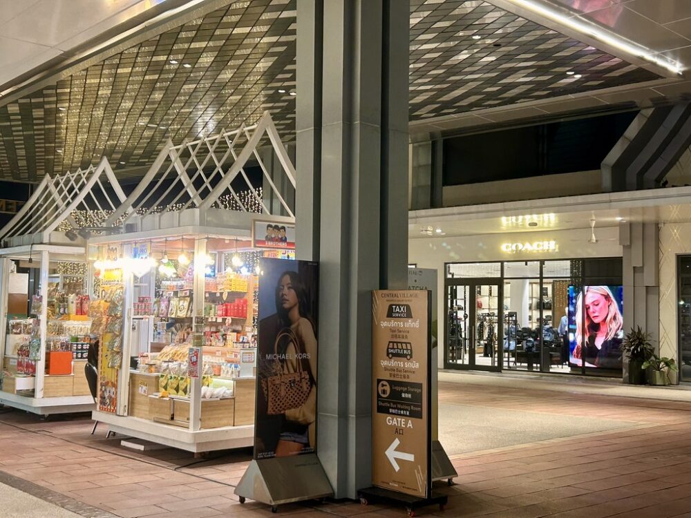 2022年1月には、第2期拡張エリアがオープンし、店舗数も増え、さらにパワーアップいたしました。空港近くの駅や市内までの無料シャトルバスの運行(2022年5月現在休止中)や有料コインロッカーも完備しています。