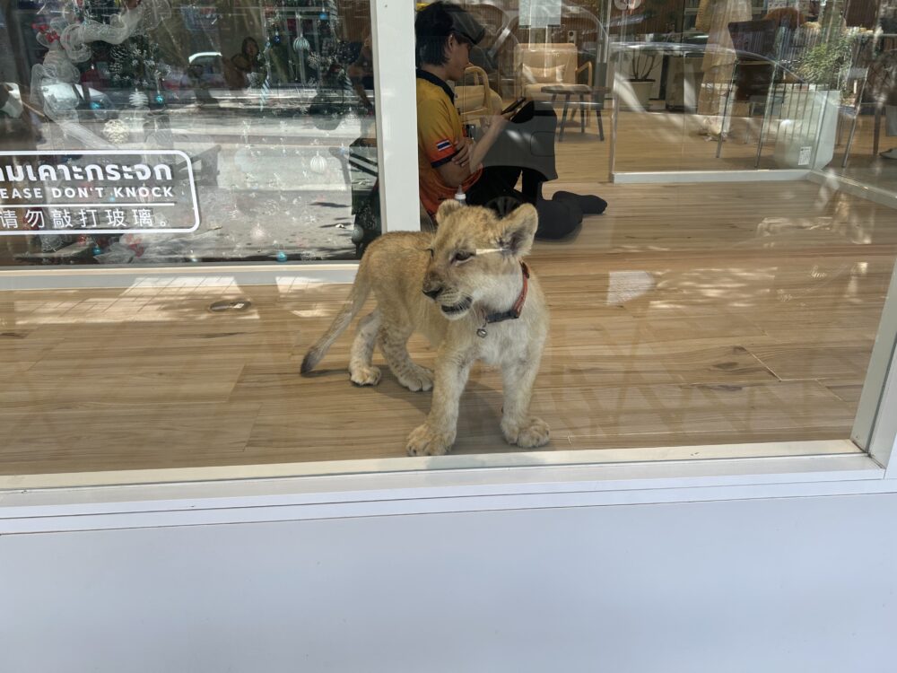 チェンマイライオンカフェ Lion world cafe レストラン、カフェ 2025.12.152026.03.30 家のすぐ近くにライオンカフェで来ました。ライオンを見ながらの通学、中には入ったことはないので外観だけ。 店名 Lion world café場所162 2 Changklan Rd, Tambon Chang Khlan, Mueang Chiang Mai District, Chiang Mai 50100 タイ電話番号+66838280090営業時間10時00分~20時00分