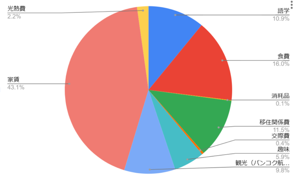 | タイ語学校学費 | ฿3,300 | ¥15,180 | ||