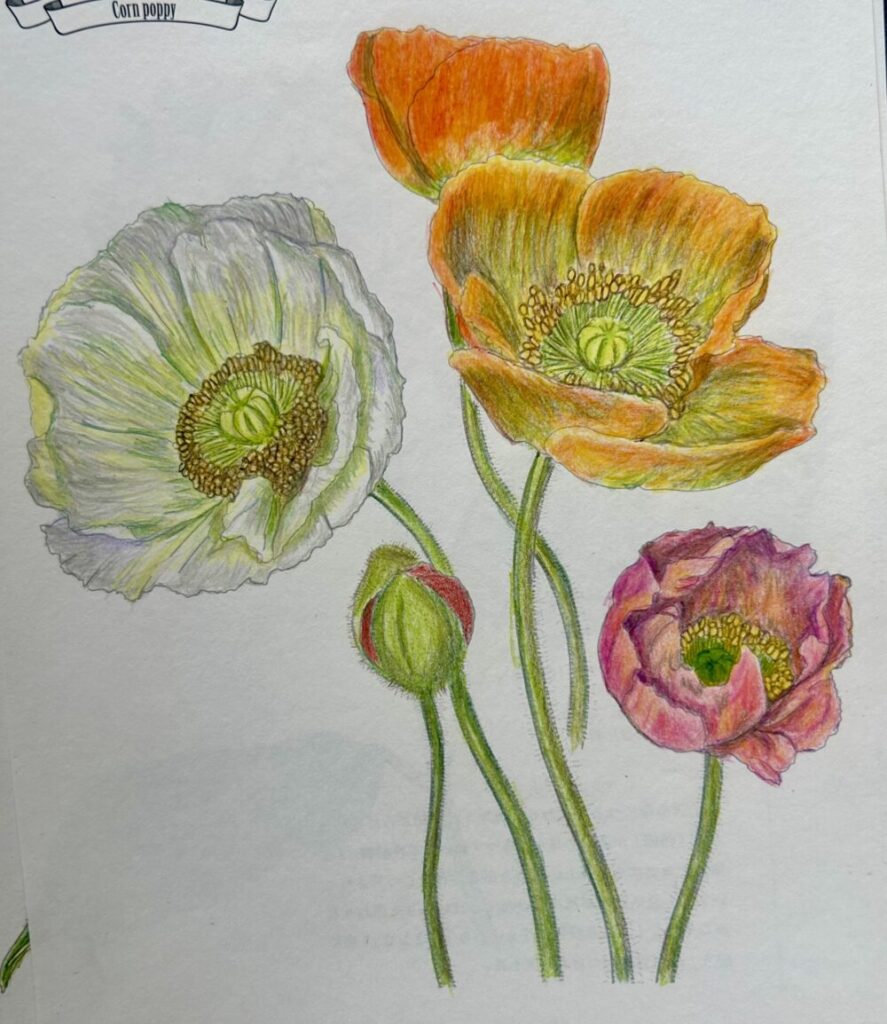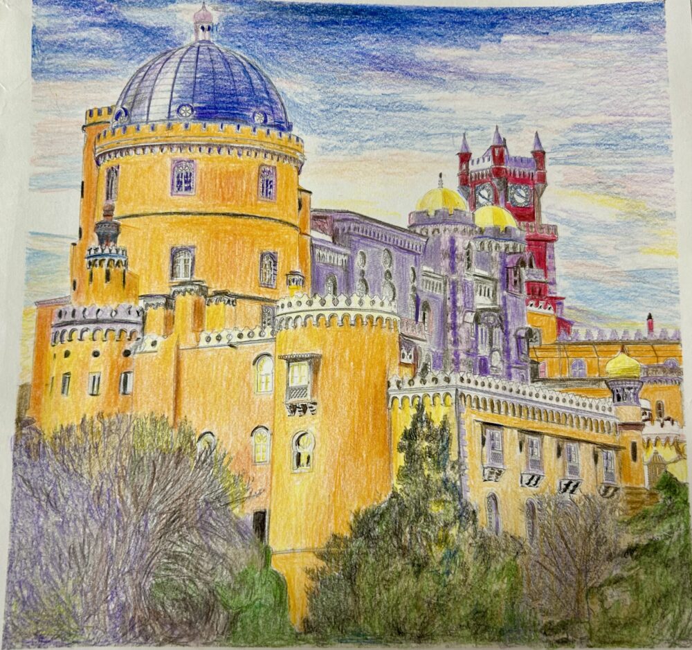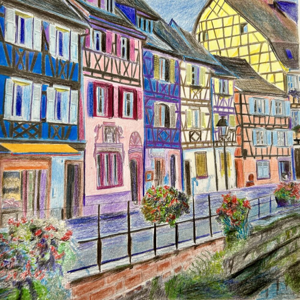 東京にいる時に塗ったので使った色鉛筆は無印の60色色鉛筆のみなのでコーリンのようなマット感はだせませんでした。しかし風景画はとにかく細かい、10枚くらい塗ったら慣れてくるのか。