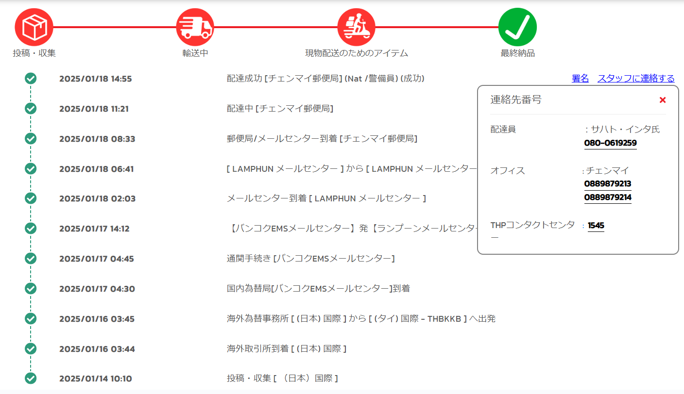 | 2025/01/18 11:21 | 配達局から出発 | THAILAND | ||