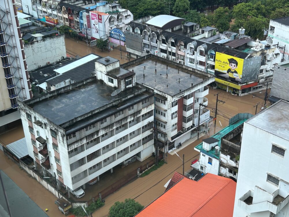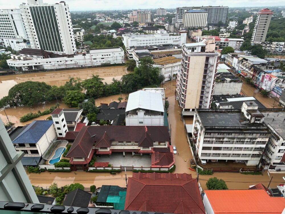 ●チェンマイのピン川付近の広い地域で大規模な洪水被害が発生、被害が拡大中。