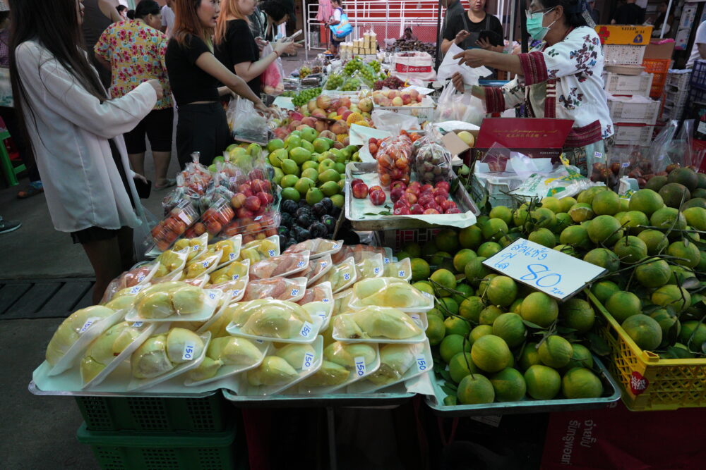 カナダやアメリカのように、タイでも果物や野菜、肉、魚など基本量り売りのため、慣れない日本の消費者としては値段は買ってみなければはわからないということで、なかなか手をのばせないでいました。