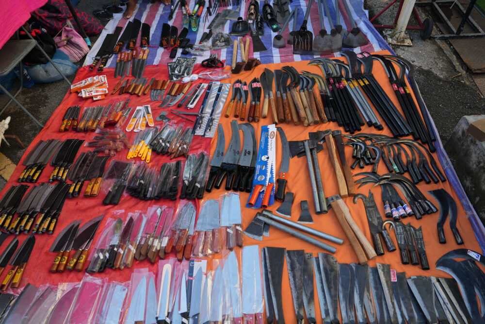 スプラッタームービーといえば、刃物屋さんも多く、見たことのない刃物が並んでいるのを見た時、思わずスプラッタームービー連想してしまいました。