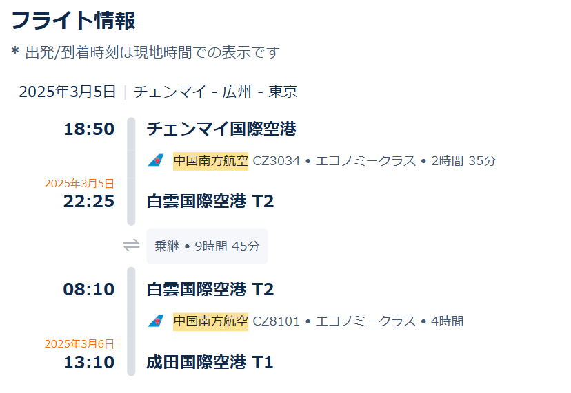 今回は中国南方航空が30,680円と最安値だったので早めに購入。
