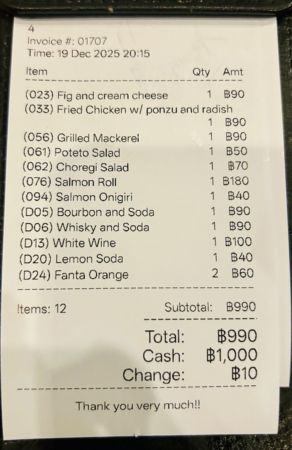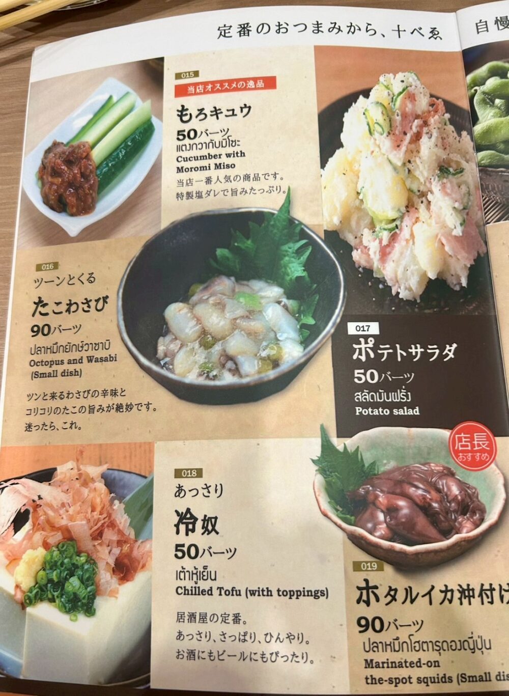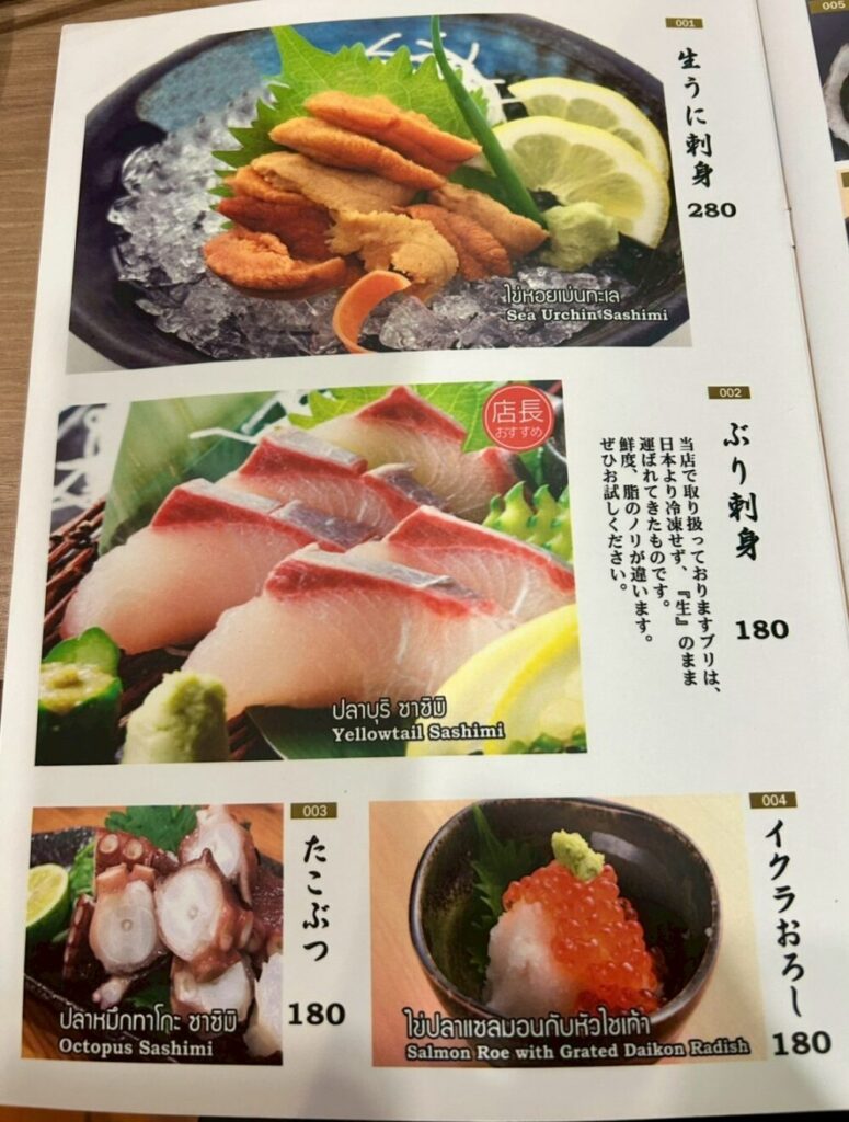 ここはほぼ日本の居酒屋ですね。タイでわざわざ日本食を食べる必要はないものの、食べたくなったときに行けるこういう店があると安心ですね。