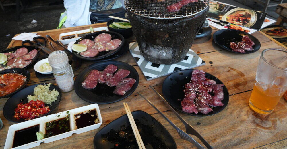チェンマイホルモン本店のテラス席はもくもくと上がる煙も気にせず、がんがん食が進む解放感、まるでキャンプのバーベキューの様なのがまたいいです。