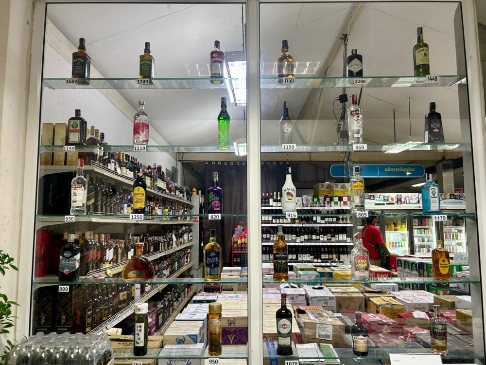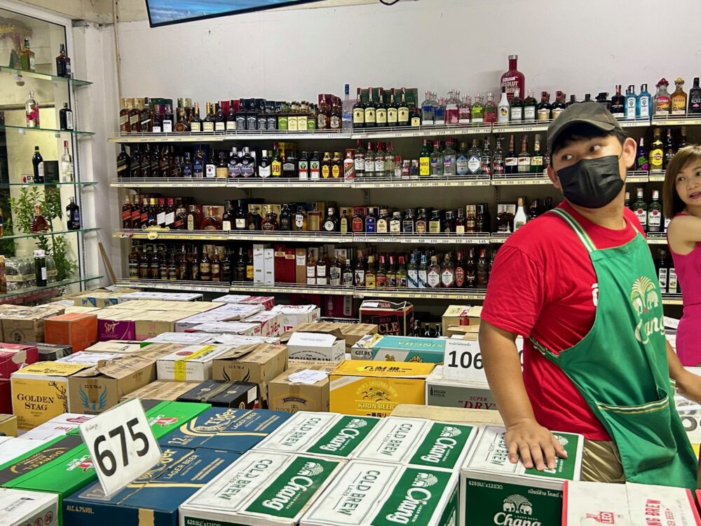 Nainoi Beverage (นายน้อยการสุรา) 卸売りなのに店内外で飲めるスペースあり。