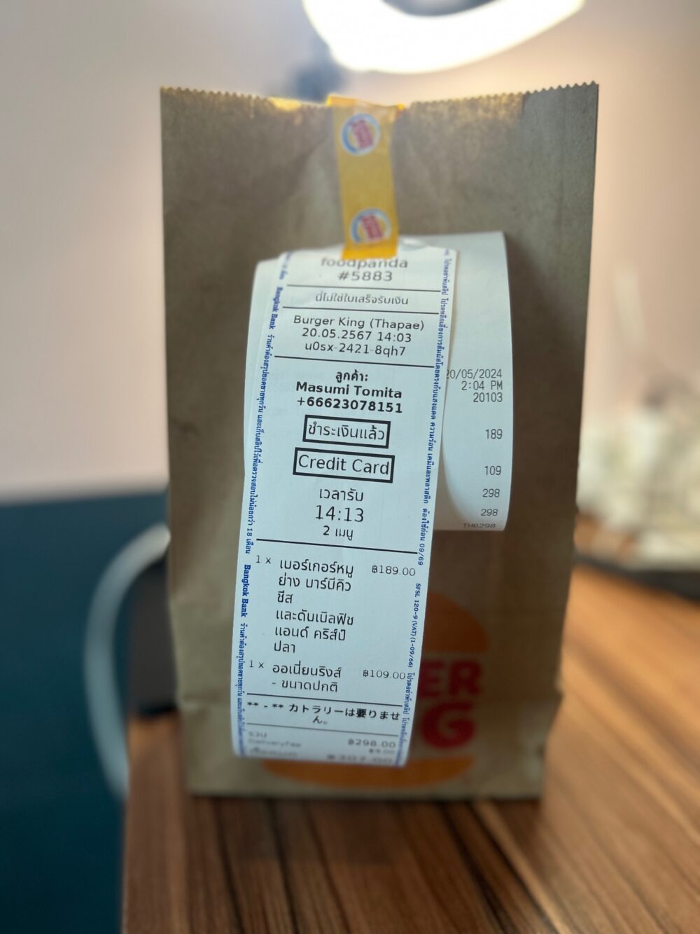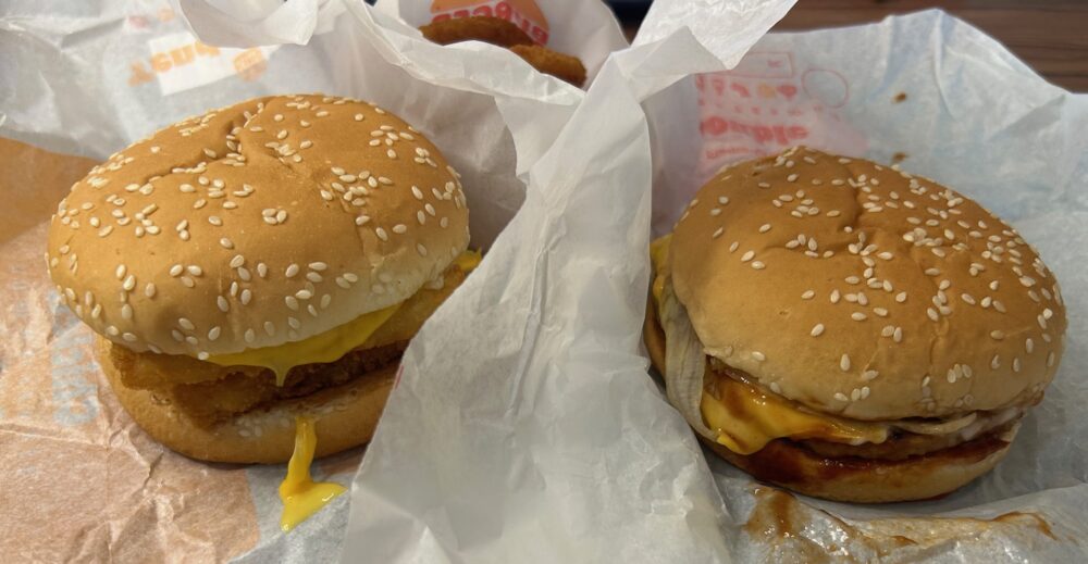 ハンバーガーとフィッシュバーガー2個セットで189baht