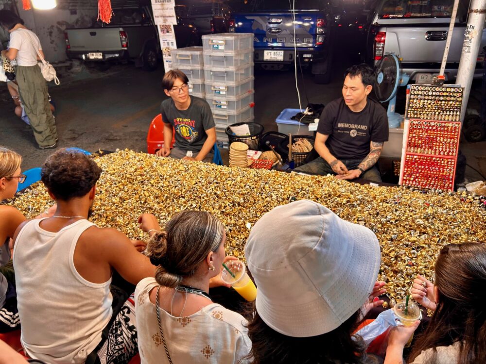 屋台の焼き鳥の作り方とか、ガラス細工?とか、いろいろな物の陳列の様子などを見ていると、タイの人たちは結構繊細というか器用というか、細かいところきっちりしているのか?という感じがしましたがどうなんでしょう。ちょっと見は雑然とした感じがするけど、よくよく見ると結構丁寧に並べられたりしている。