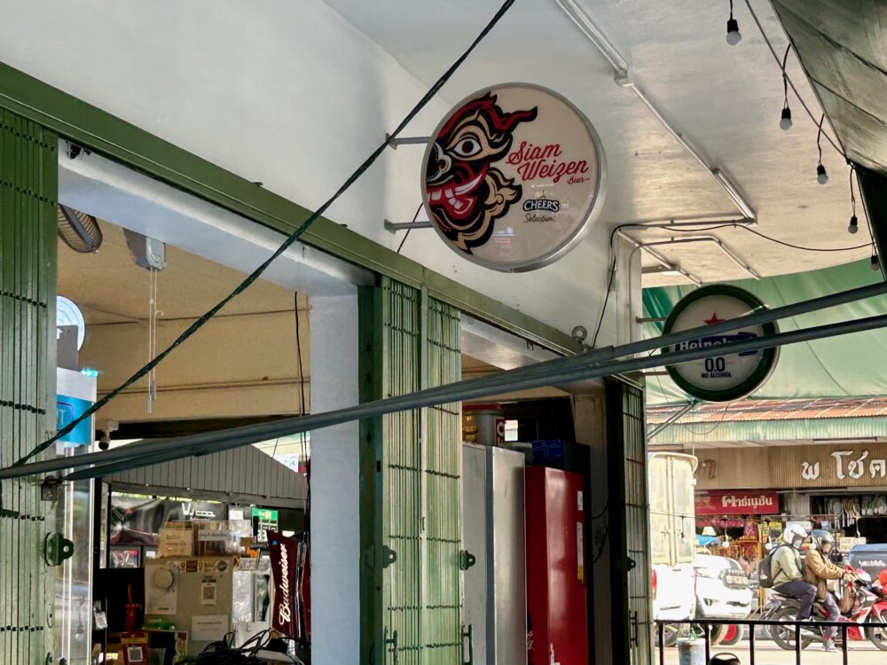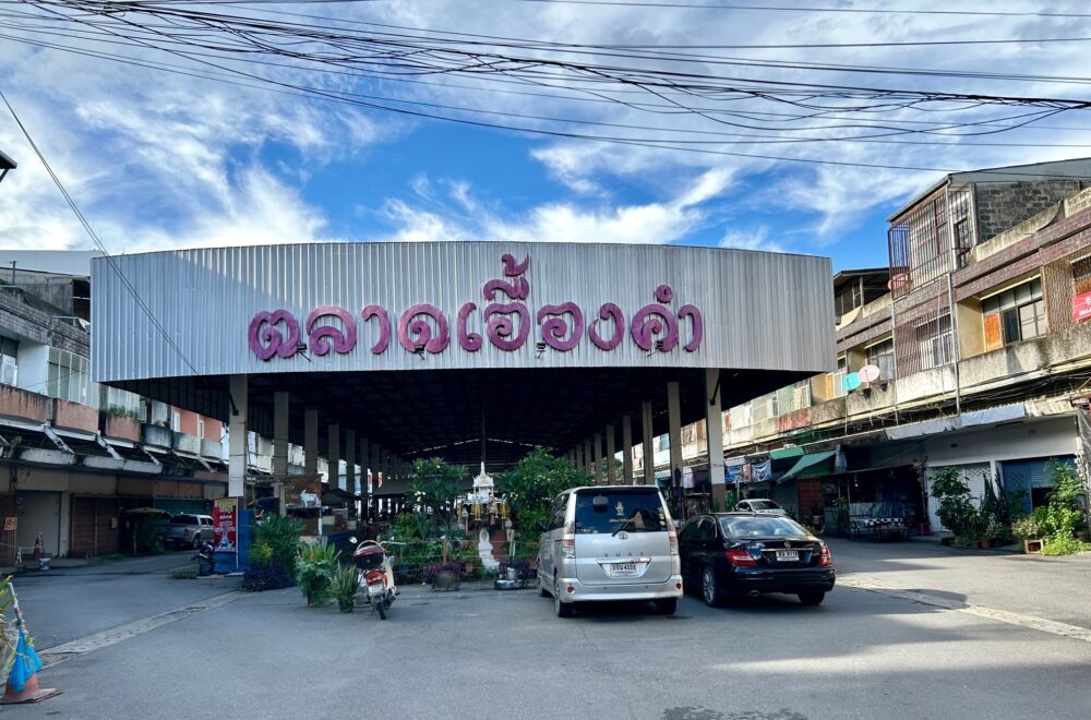 マクロの近くのウアンカム市場 楷書体(?)でも丸くかわいいタイ文字がさらにまるまるに。
