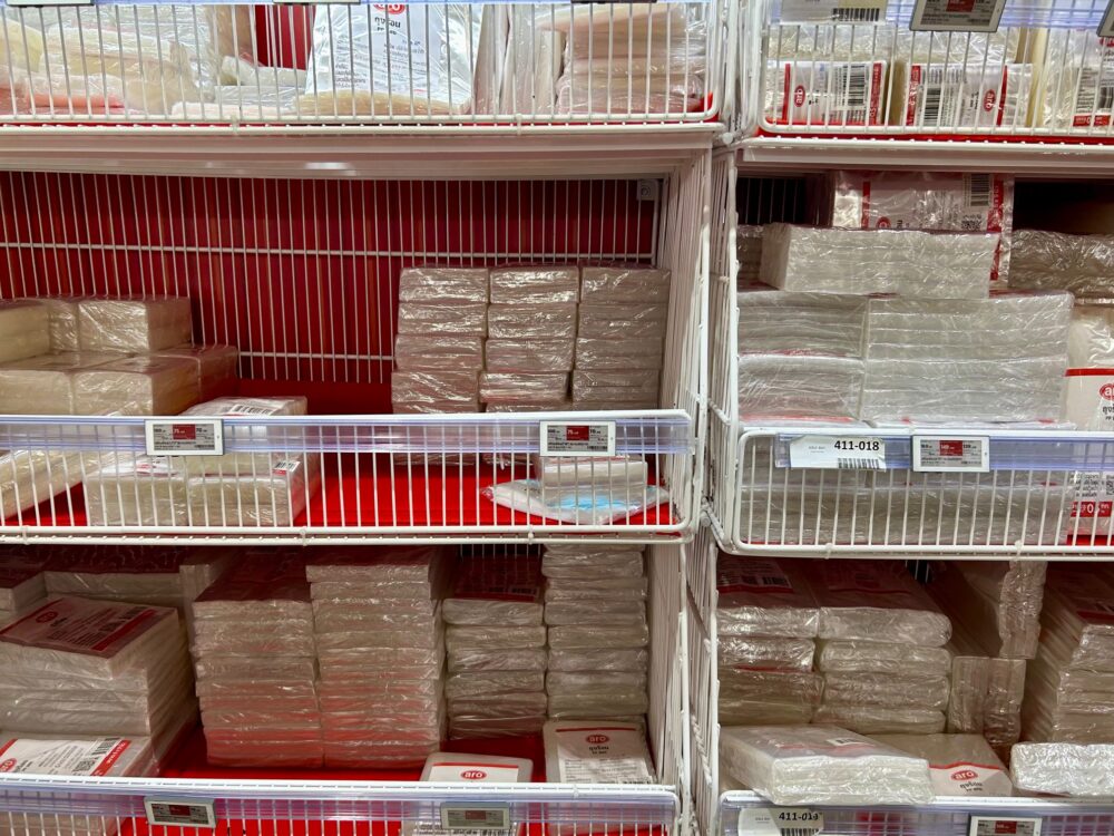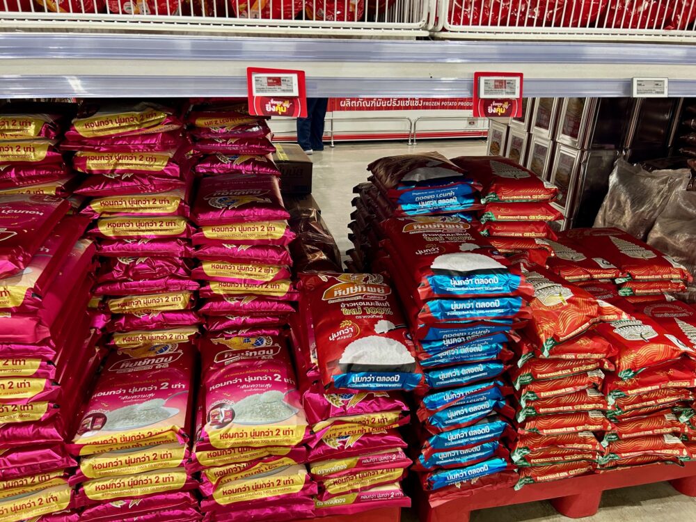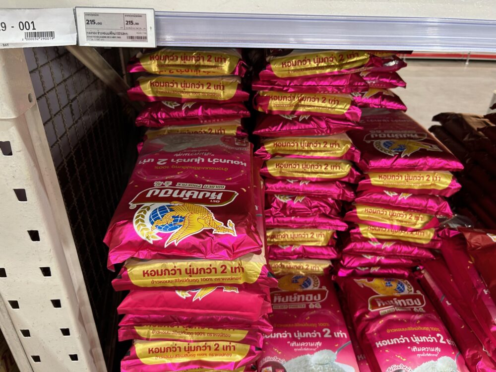 タイのお米の袋はどれもギラギラ、チョコレートの包装紙、クリスマスの飾り並、日本のパステル、基本白系とはずいぶんと違ってます。