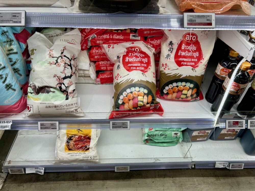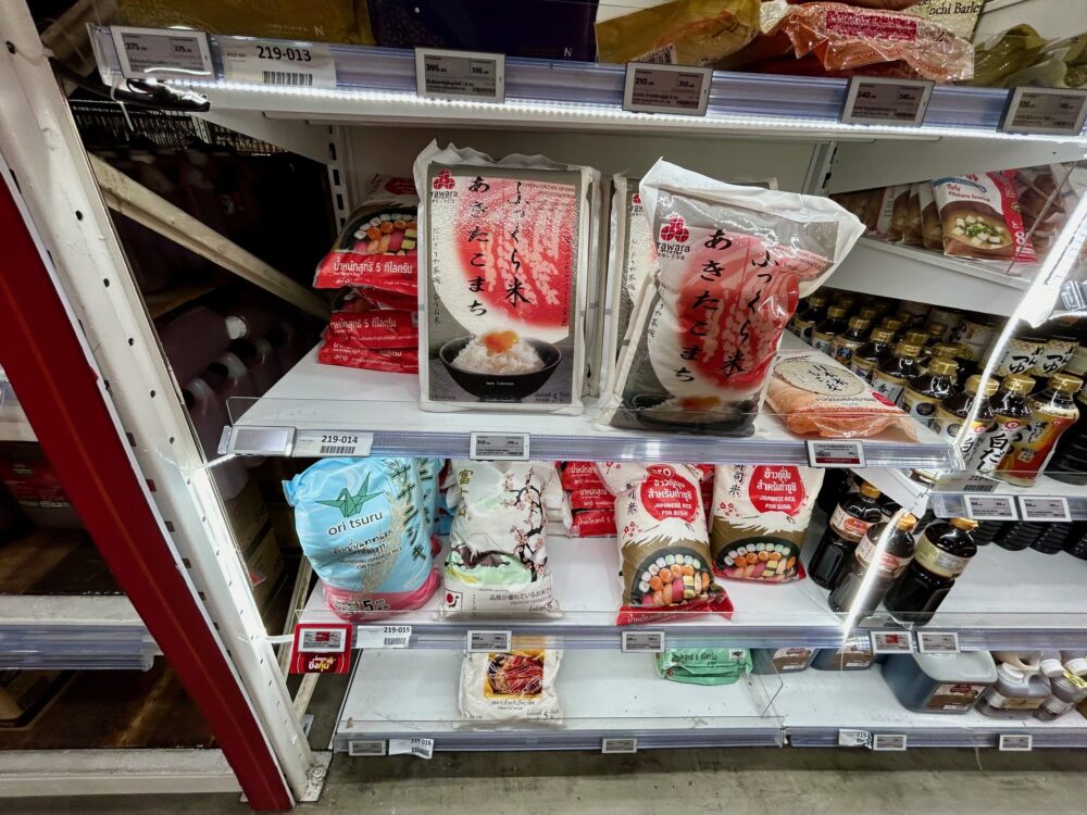 あったのね、日本米、それもジャスミン米と値段変わらないなんて、ササニシキが5kgで240baht(1,040円)、それもタイ産のササニシキです。